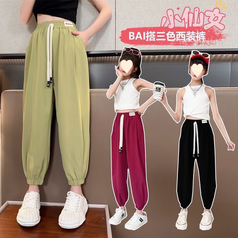 Girls’ Summer Thin Anti-mosquito Pants Large Children Wearing 12 to 15 Years Old Foreign-style Ice Silk Lantern Tie Feet Shaking Pants