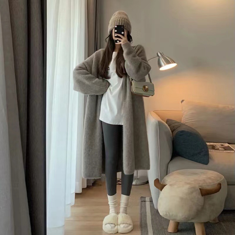 Solid Color Lazy Style Loose V-neck Fashion Elegant Sweater Cardigan Women’s New Autumn and Winter Long Sleeve Cardigan Coat Trendy