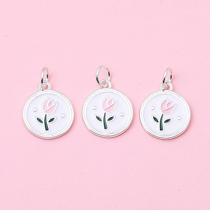 s925 silver epoxy white tulip round pendant handmade diy bracelet necklace pendant jewelry accessories