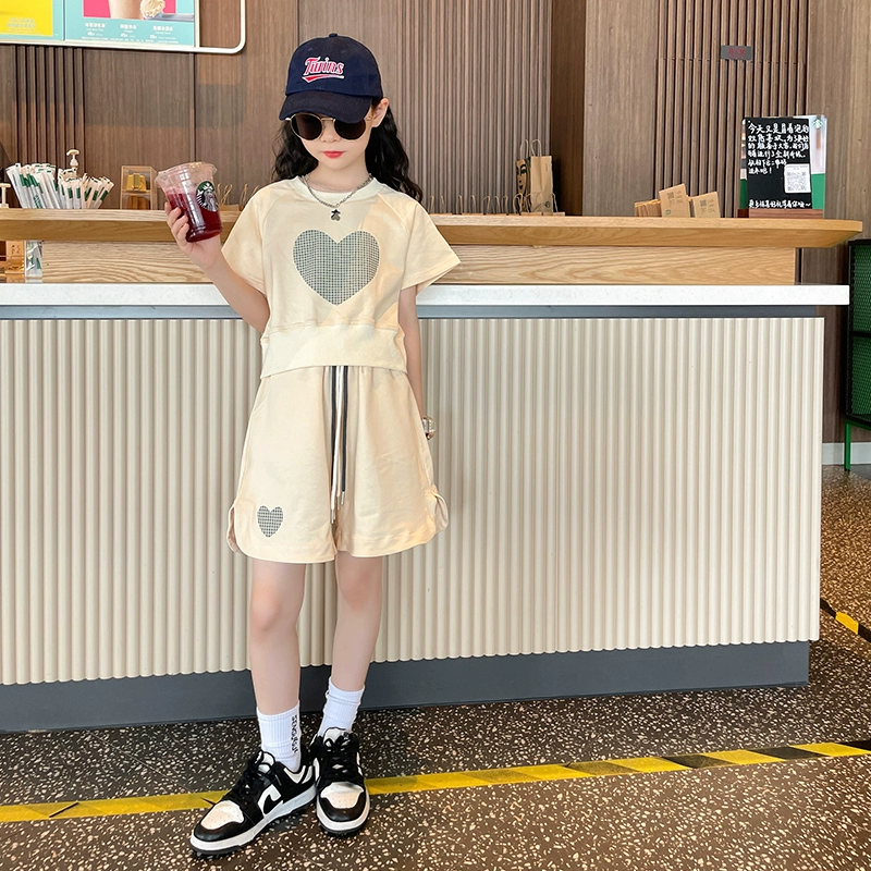 Girls summer suit 2023 new medium and large children’s short-sleeved shorts clothes trendy casual cotton children’s clothing two-piece set