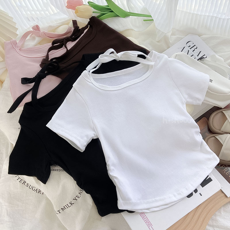 Girls Pleated New Dancing Neck Sweet Cool Style Summer Slim-fit Short Short-sleeved T-shirt Top 0200A018