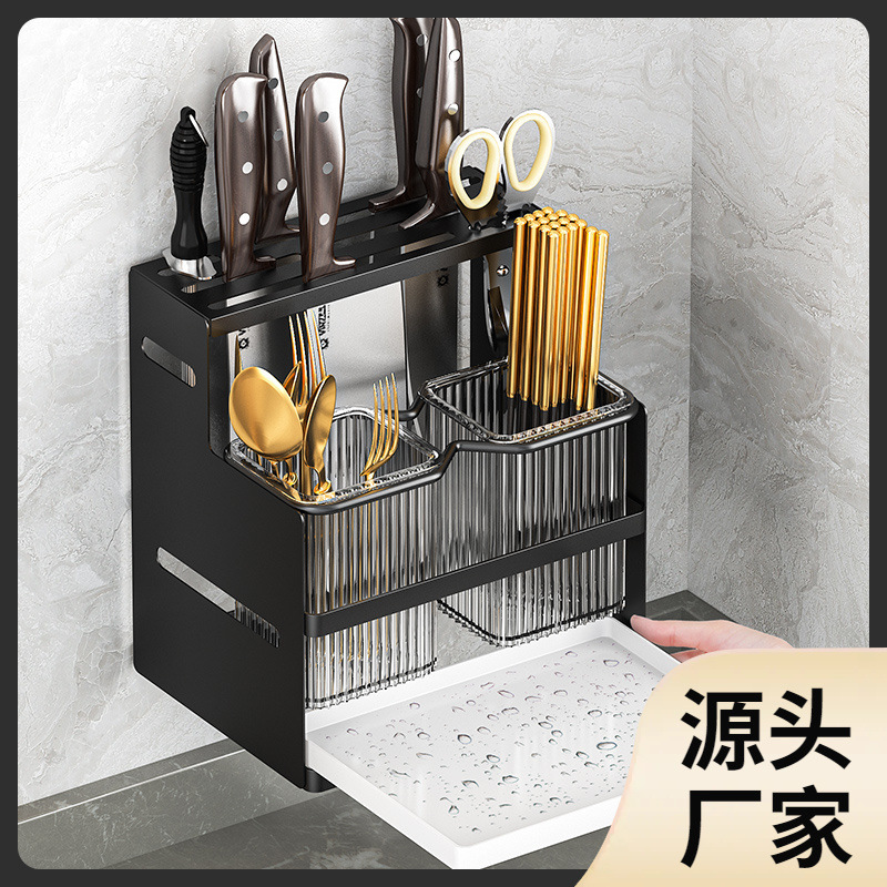 Drain Chopsticks Holder Household Kitchen Knife Holder Wall-mounted Multifunctional Kitchen Knife Holder Storage Rack Integrated Knife Storage Rack