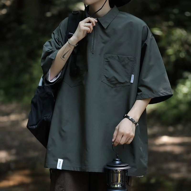 Heavy Japanese work clothes retro half-sleeved top POLO shirt