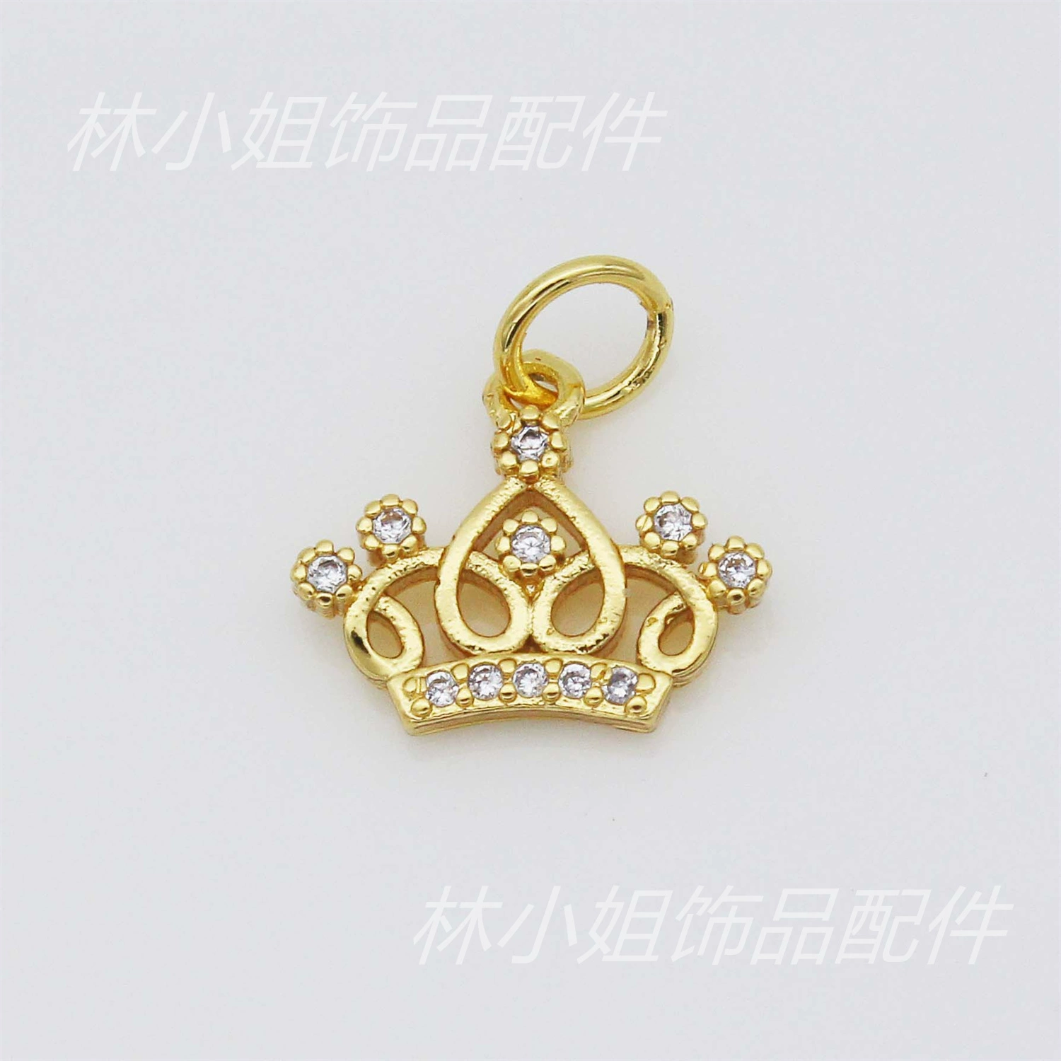 Color-protected 18K bag gold micro-inlaid zircon aircraft crown small pendant pendant necklace pendant diy bracelet bracelet necklace accessories