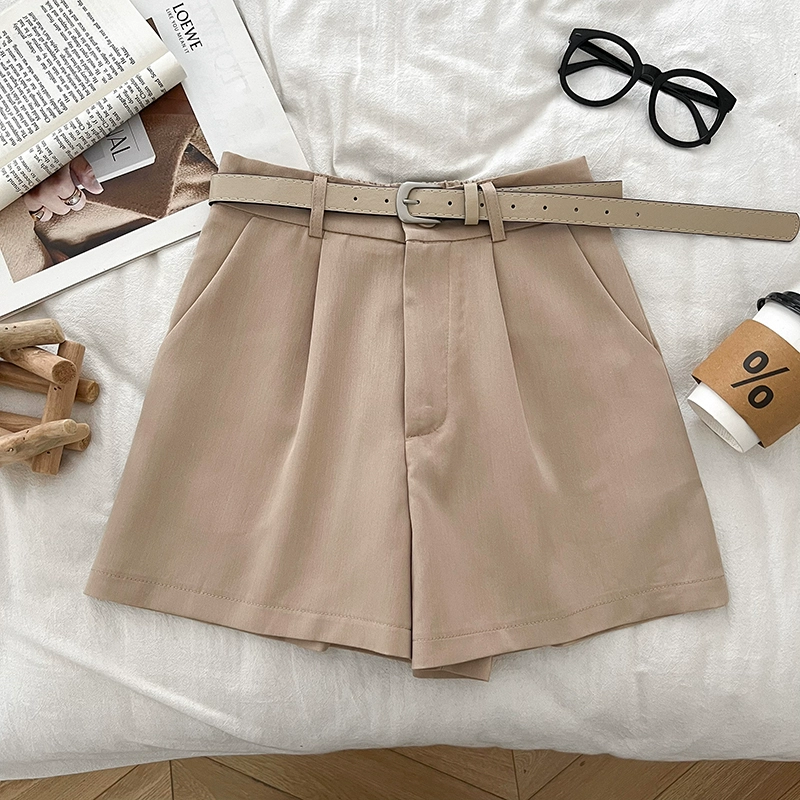 High-waisted fashionable suit shorts for petites with belt