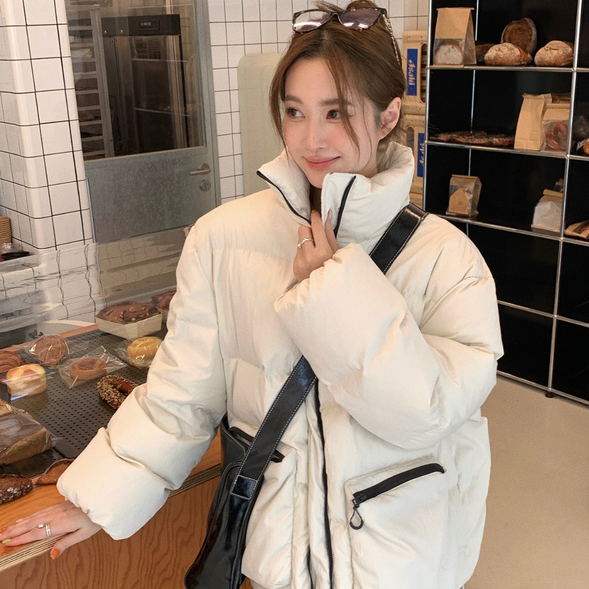 [No refund or exchange] Korean-style stand collar warm down jacket women’s winter contrast color zipper 90 white duck down jacket
