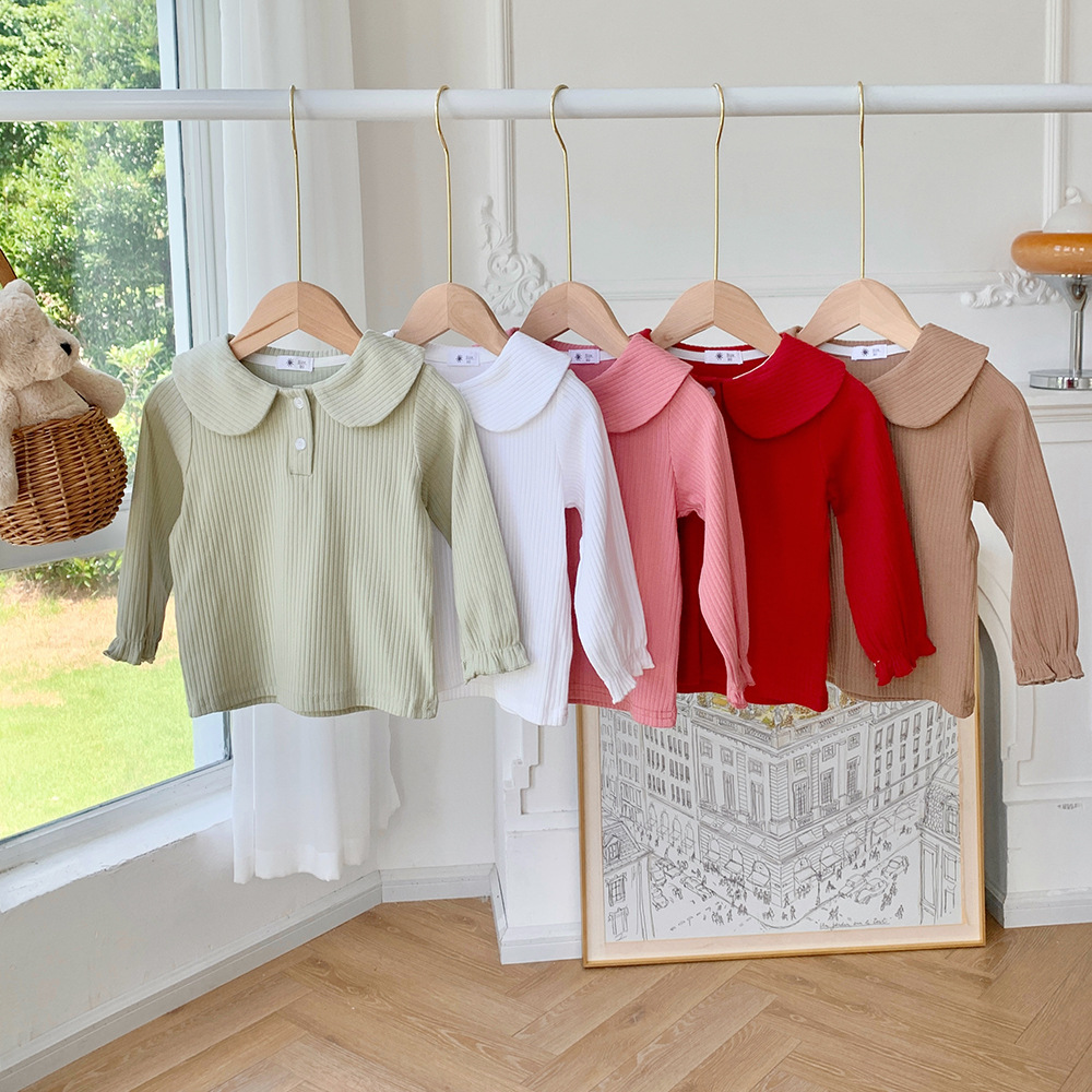Children’s Solid Color Doll Collar Base Shirt Autumn and Winter New Girls’ Korean Style Inner Knit Sweater Pit Strip Top All-Match T