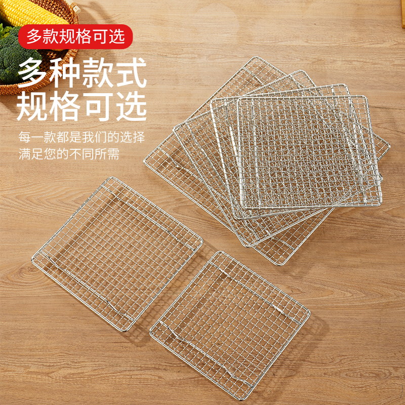 Stainless Steel Barbecue Net Square Water-proof Oil-draining Net Thickened and Thickened with Foot Grid Small Grid Outdoor Barbecue Net