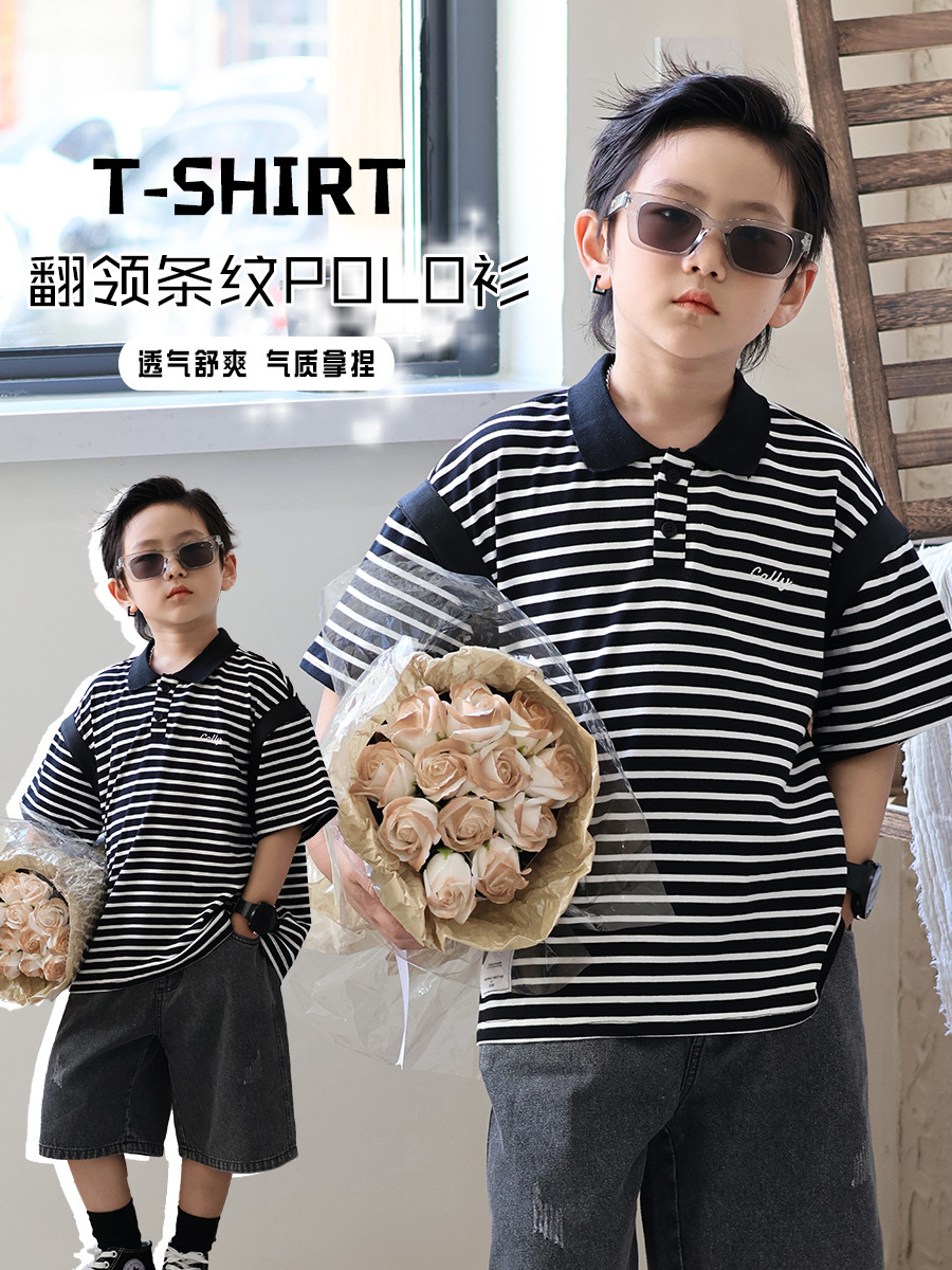 Children’s Polo Shirt Short-sleeved Summer Baby’s T-shirt Summer New Japanese Children’s Wear Boy’s Lel Striped Top