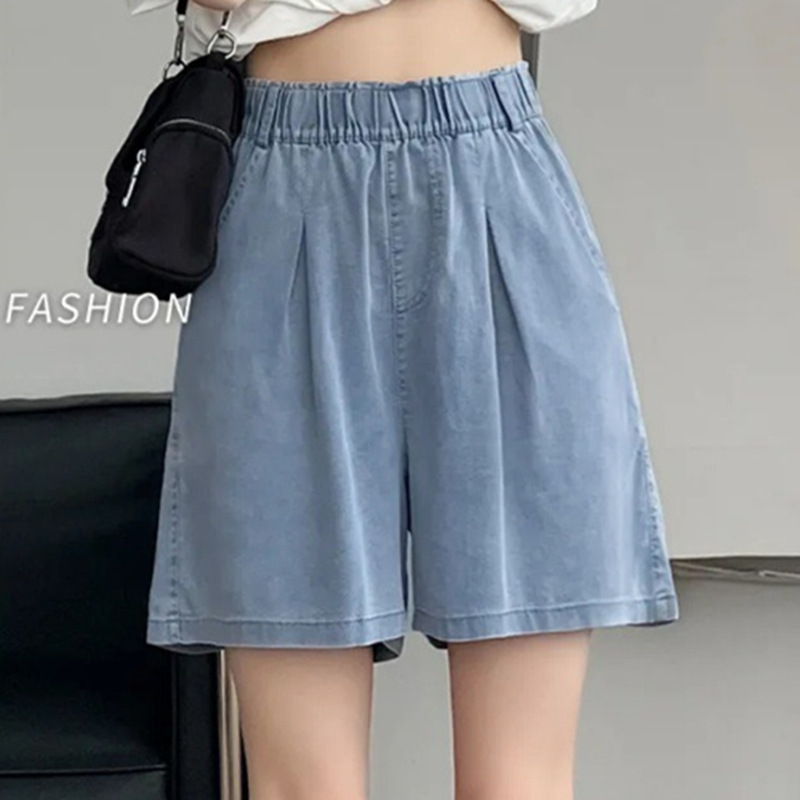 Light Color Retro High Waist Soft Denim Shorts Women’s Summer Thin Ice Silk Cool plus size Loose Slimming Wide Leg Pants