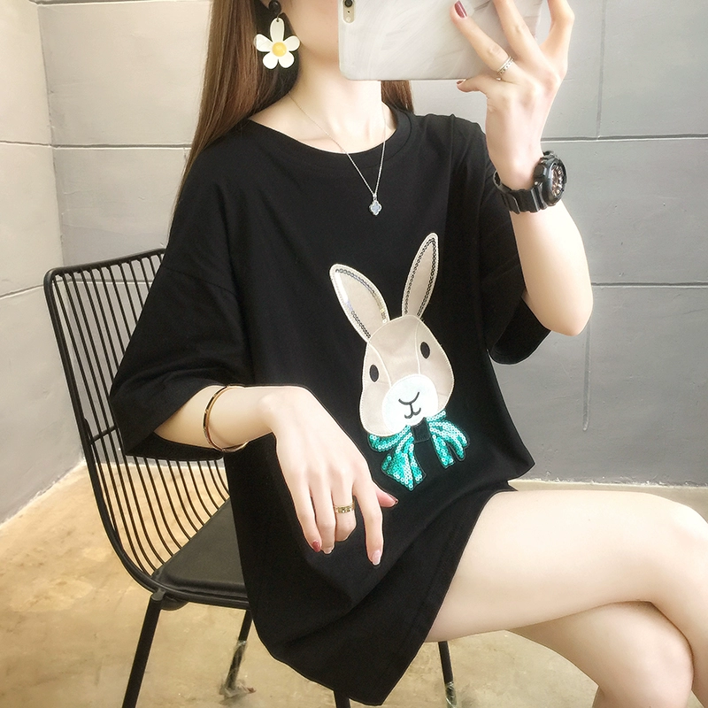 Internet celebrity pure cotton women blue loose ins short-sleeved T-shirt