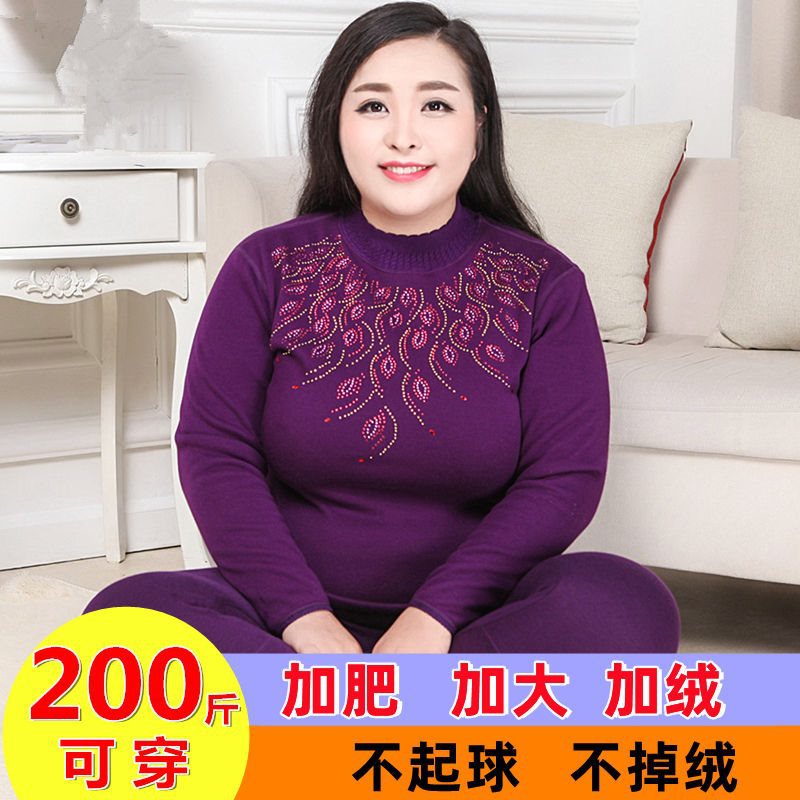 Thermal underwear ladies padded fleece-lined plus fat plus size for middle-aged and elderly mothers autumn clothes autumn pants suit 200kg
