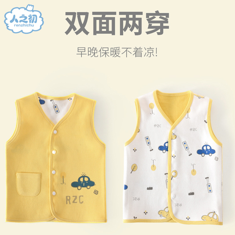 Baby Vest at the Beginning of Man Spring and Autumn Pure Cotton Cute Double-sided Wearing Children’s Western-style Vest Double-layer Waistcoat