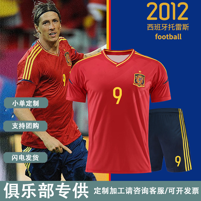 Football clothing suit custom 2012 Spain red -9 torres breathable quick-drying short-sleeved football clothing sports men