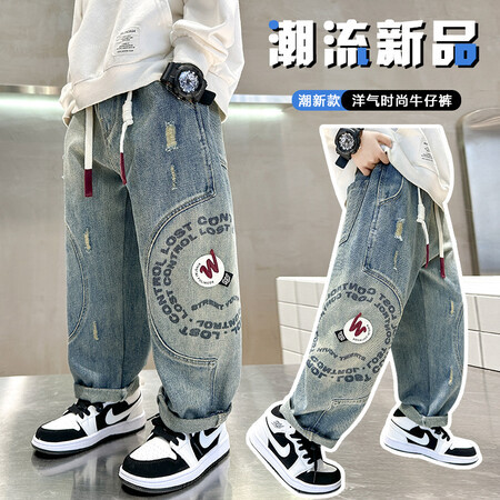 Korean style Korean style fashion brand boys’ straight workwear wide leg jeans spring 2024 new children’s spring thin