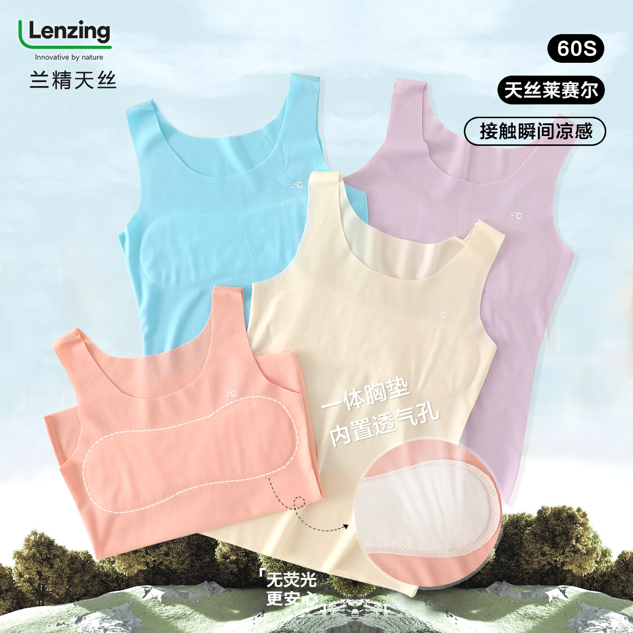 Girls’ Development Vest with Chest Pad Summer Thin Sling Inner Top Lyocell Sleeveless Anti-bump Underwear