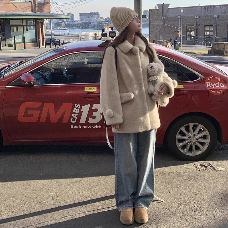 “Mid-ancient little snowball” knock cute faux mink fur mid-length gold mink fur integrated 2023 New