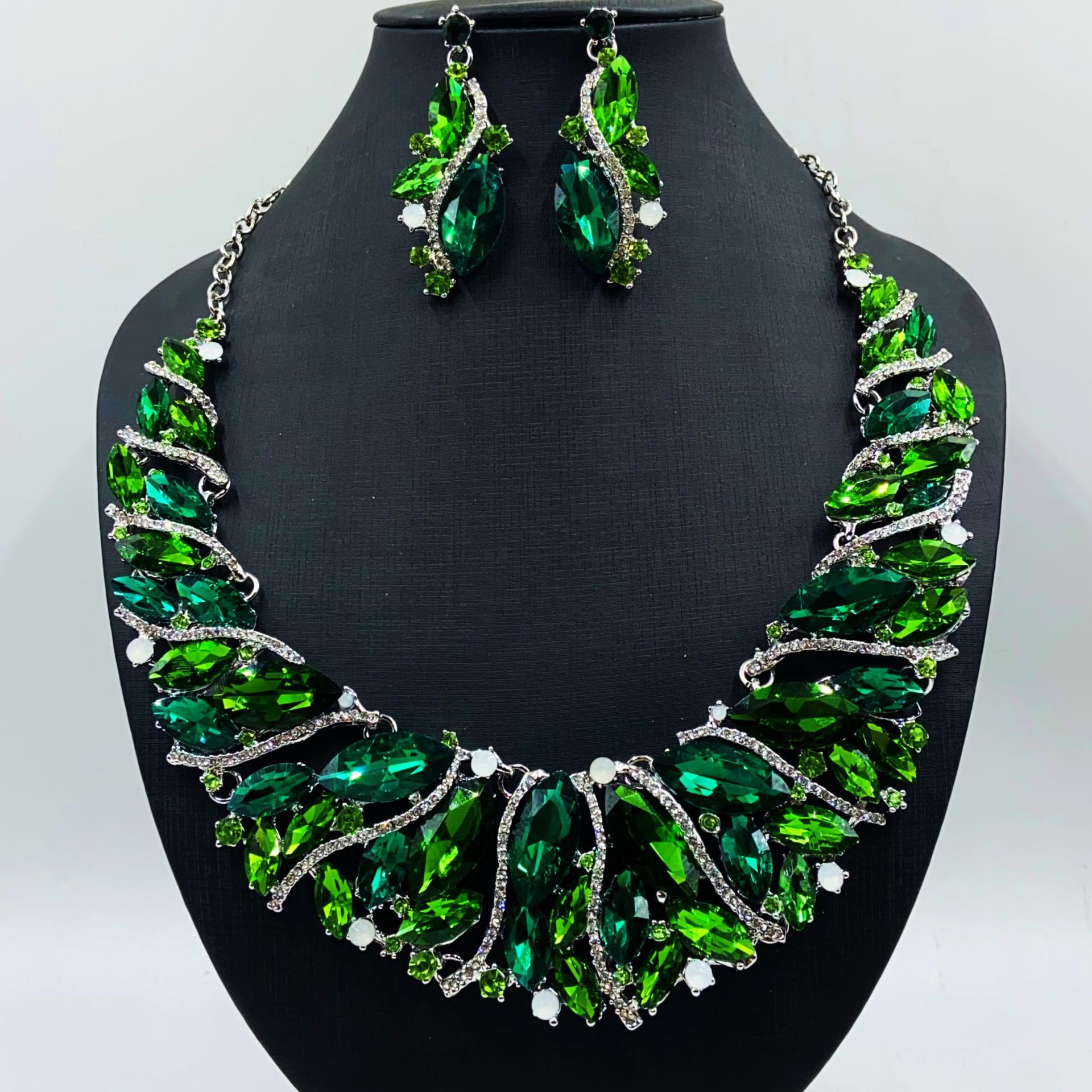 Cross-border e-commerce European and American exaggerated 2 crystal necklace earrings suit bridal banquet jewelry female accessories wholesale