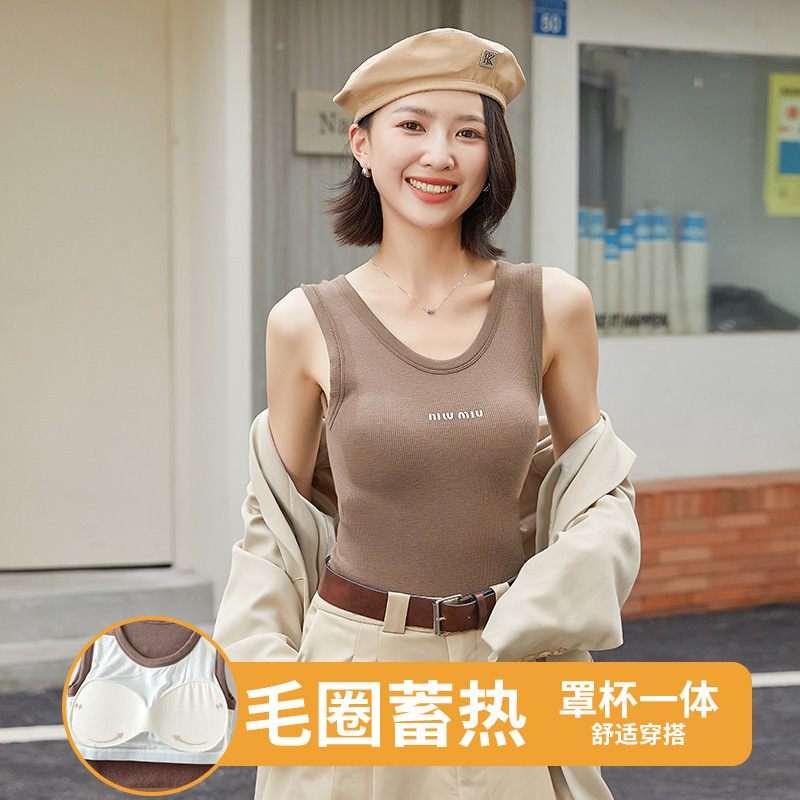 23 New de Velvet thermal vest women’s Terry with chest pad can be worn outside to cover the breast wool thread close-fitting back