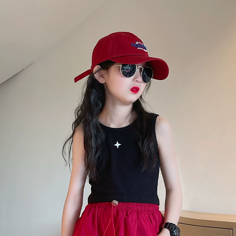 Girls’ summer vest camisole baby Western style children’s personality fashion brand Korean style color matching letter net infrared wear top