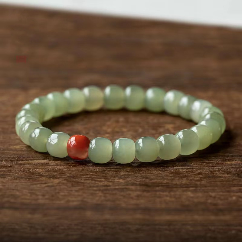 Large Crystal Natural Hetian Jade Bracelet genuine goods Exquisite Old Beads high quality Southern Red Single Ring Bracelet for Women