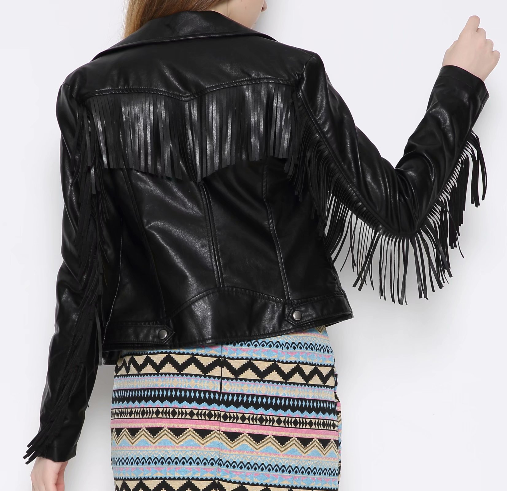 Independent Amazon Short Long Sleeve PU Leather Jacket Tassel Punk Fashion Women’s Bike Leather Jacket