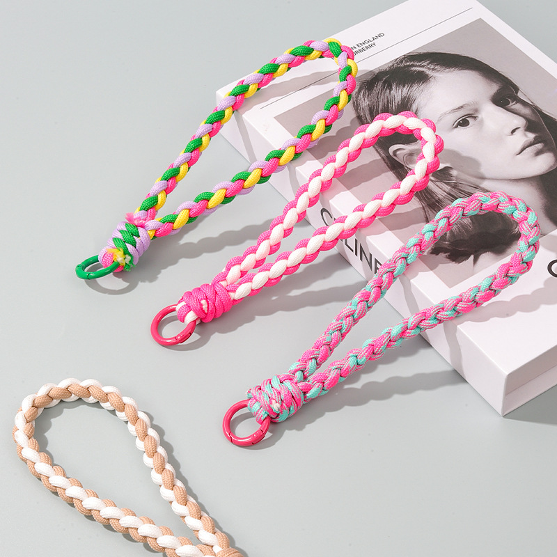 ins simple style solid color woven handmade rope colorful bracelet universal phone case CCD camera lanyard mobile phone lanyard