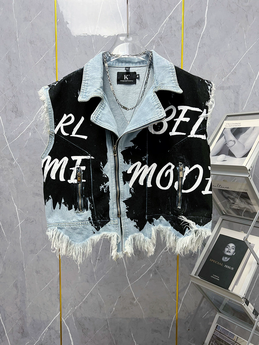 Trendy brand shaved edge design personalized denim vest