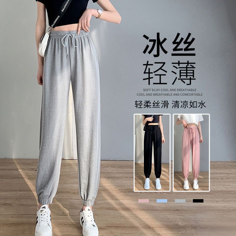Ice Silk Sports Pants Women’s Summer Thin Loose Leg Grey Sweatpants Small Nine-point Casual Slimming Quick-drying Pants