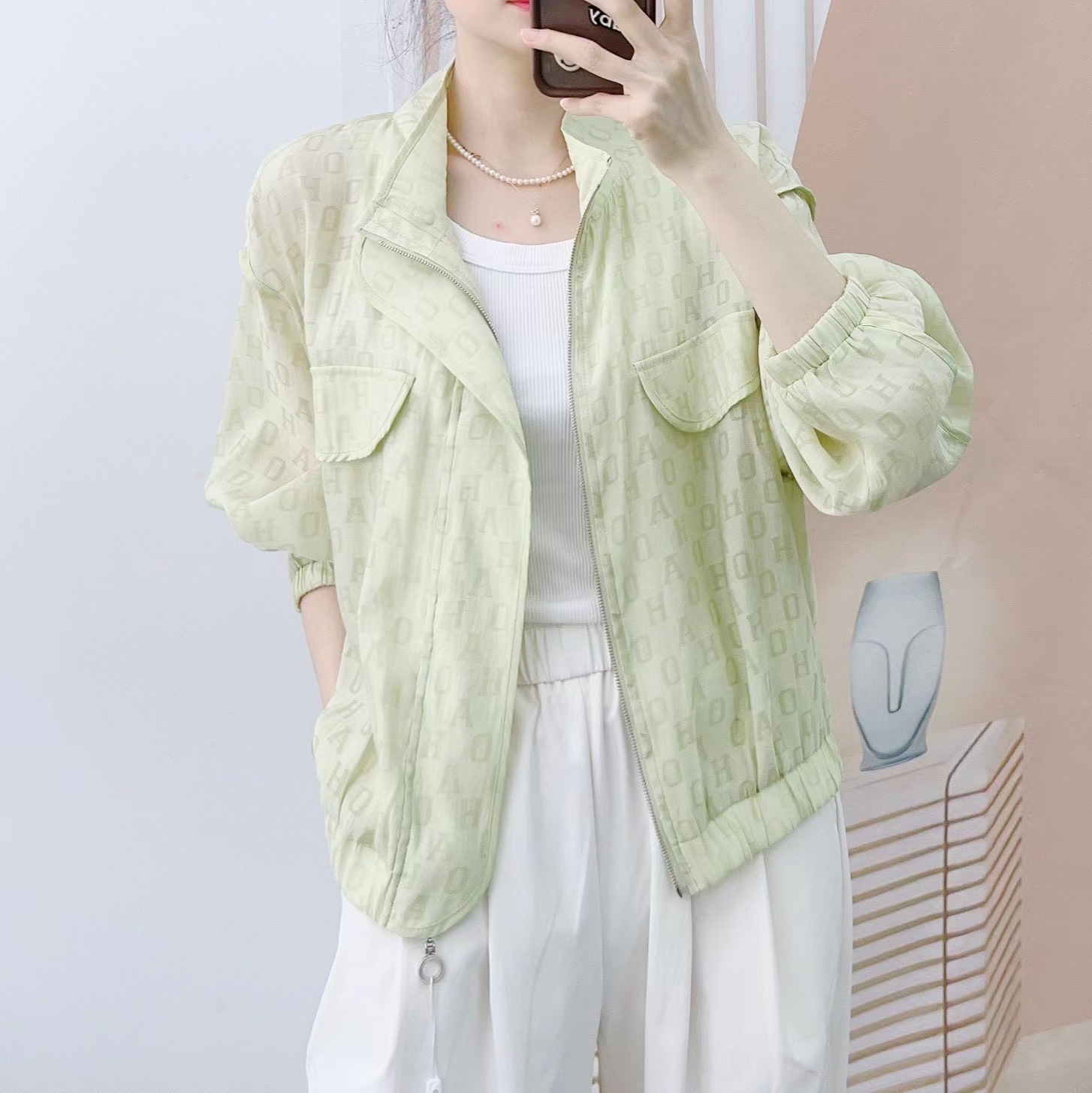 2024 Spring and Summer Fashion Korean Casual Loose All-match Solid Color Dark Flower Zipper Sunscreen Jacket 575
