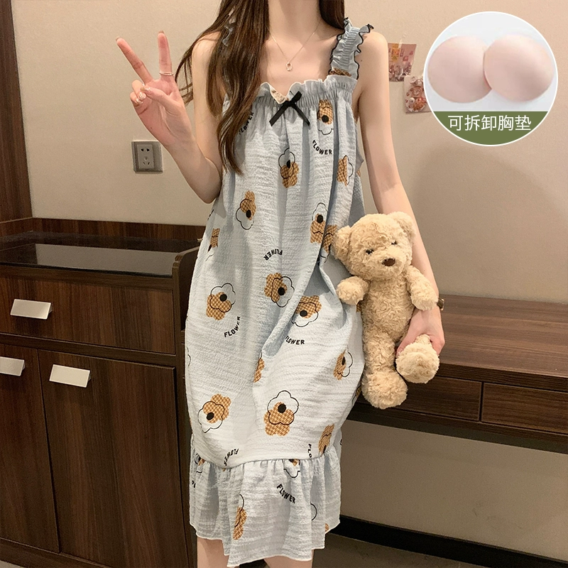 Pajamas Female Summer Breath Cotton Senior A sensing Skin Skin Summer Ms. Body Body Pad Large Furnishing Dress Dress