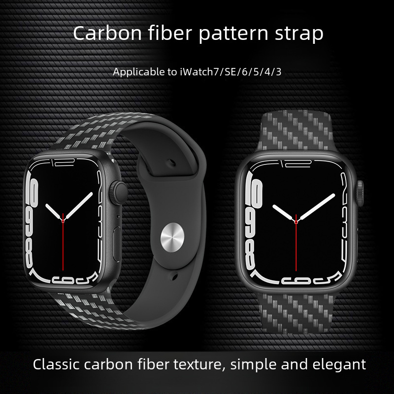 Carbon Fiber Printed Silicone Watchband Wristband for Apple S8765432SE Generation Full Series Apple Watch