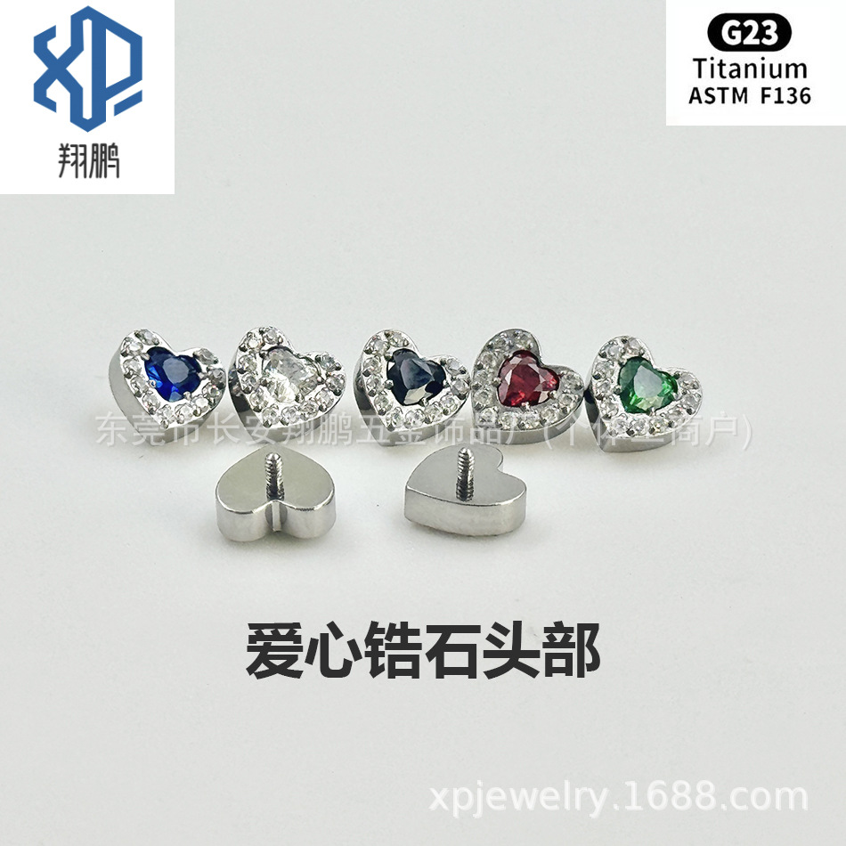 F-136 titanium alloy love inlaid zircon lip nail head G23 titanium peach heart ear nail ear bone nail puncture jewelry