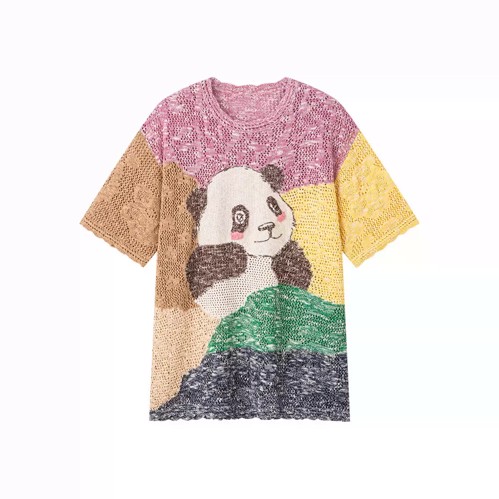 UOOYAA knitted T-shirt grandma retro panda sweater