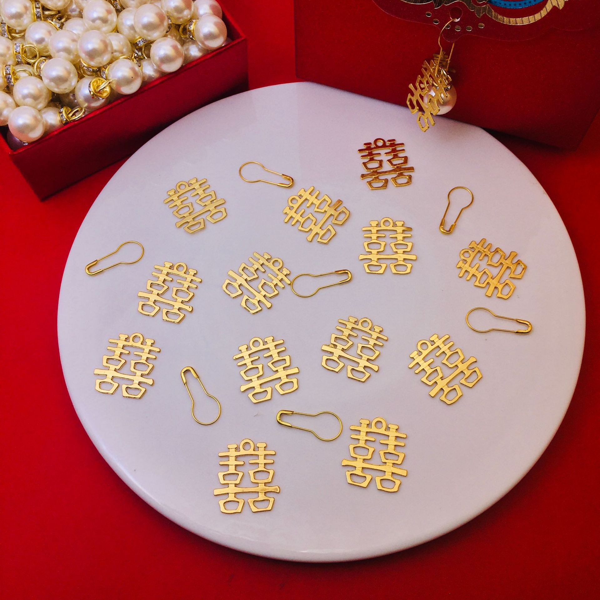 New double Xi character pendant wedding gift wedding candy pendant tag diy alloy accessories pin pearl decoration