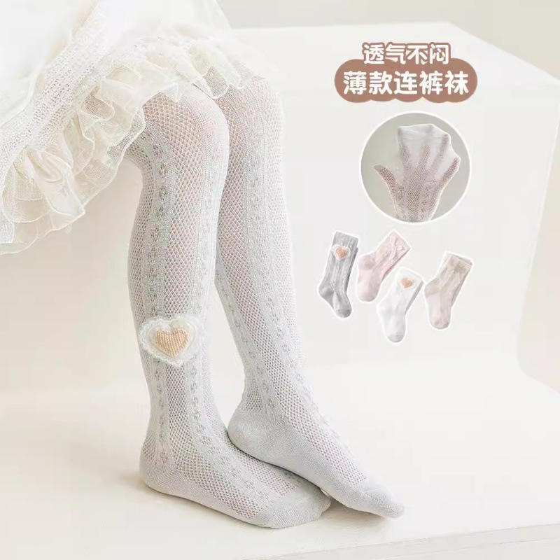 Girls pantyhose summer mesh stockings children’s base socks breathable princess socks small and medium-sized children’s white one-body socks