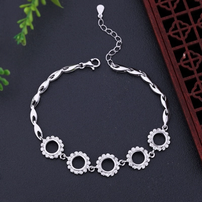 S925 sterling silver bracelet empty support inlaid with jade jade beeswax turquoise empty support 5 round stone positions empty support 7*7