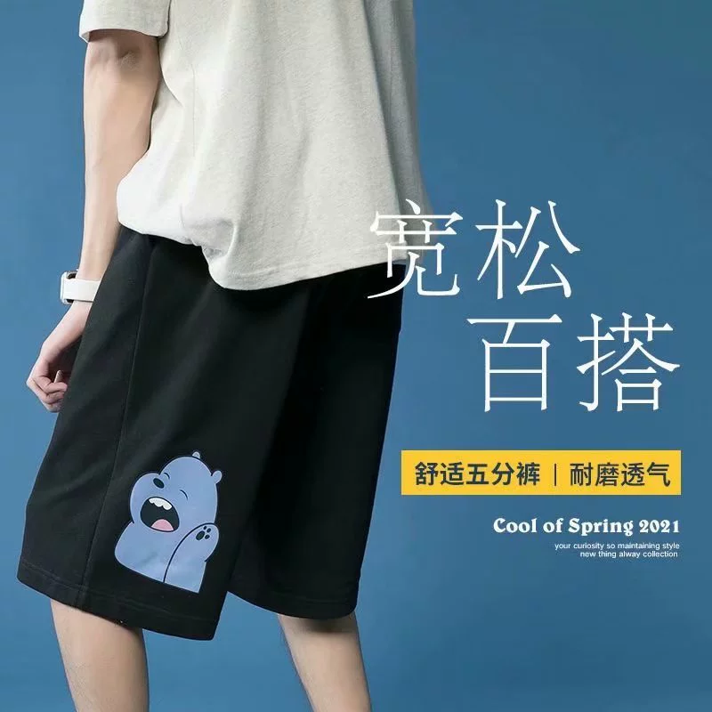 Five-point print pure cotton plus size shorts for home and outdoor wear
