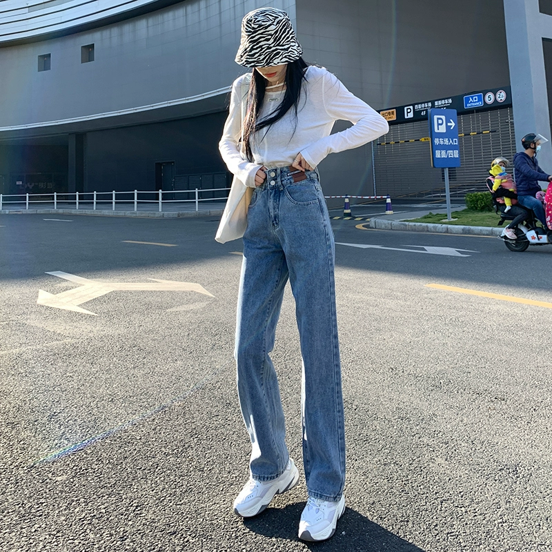 Pull back retro straight-leg spring and autumn high-waisted slimming wide-leg pants