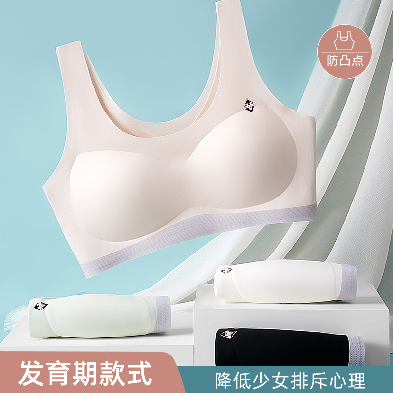 Ice Silk seamless girl’s development underwear wireless anti-bump comfortable detachable cotton pad student base vest