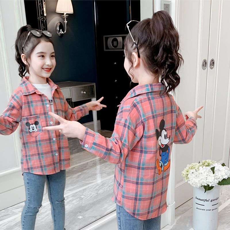 Girls’ Shirt Spring and Autumn Middle and Large Children’s Plaid Shirt Children’s Coat Korean-style Fashionable Long-sleeved Shirt for Little Girls