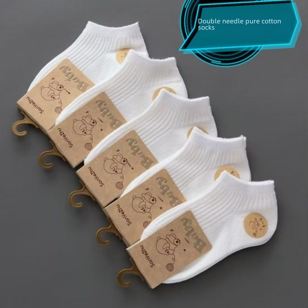 Children’s White Socks Cotton Boys’ Short Socks Girls’ Mid-tube Socks School Spring and Autumn Primary School Spring and Summer Thin