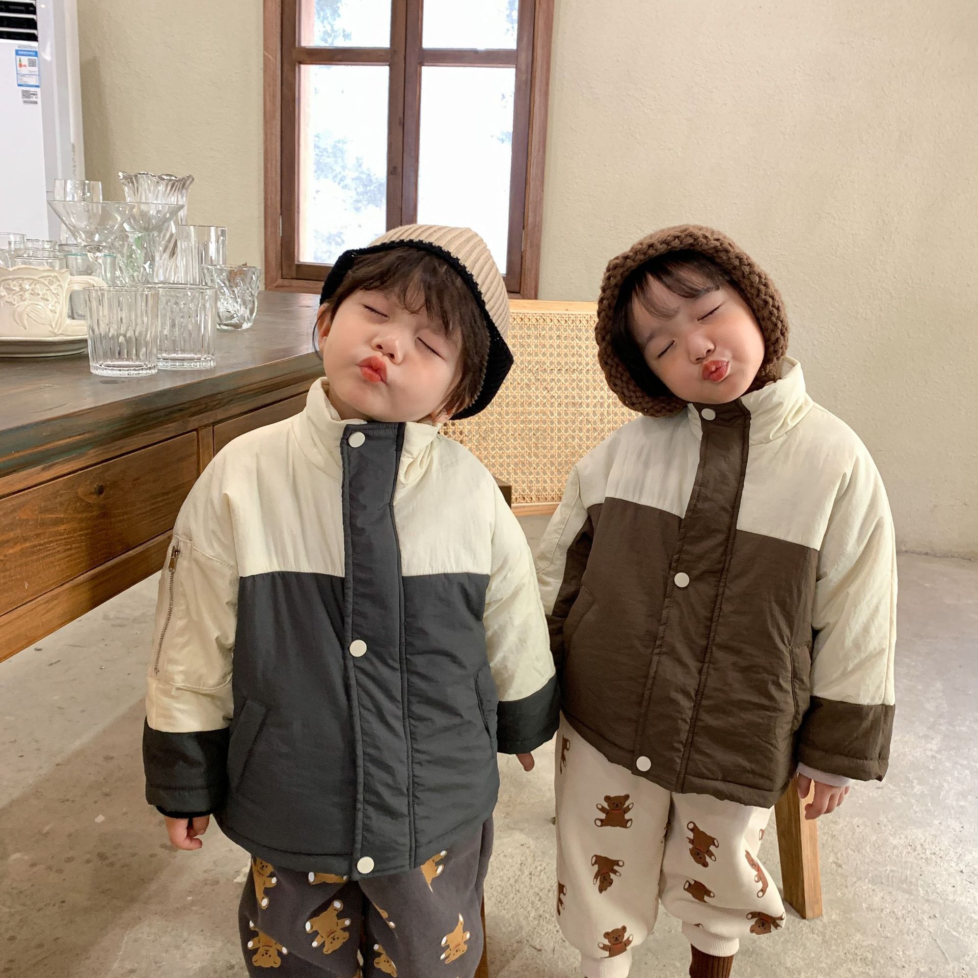 Winter Korean children’s clothing children’s cotton-padded jacket color matching fleece-lined thick boys and girls new cotton-padded warm cotton-padded jacket