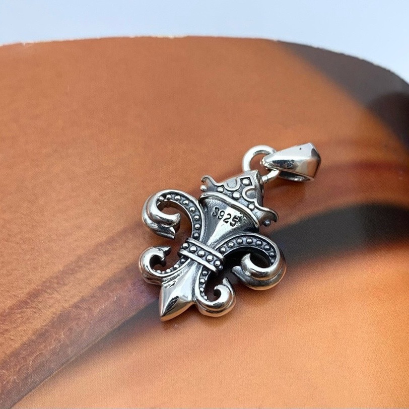 S925 Sterling Silver European and American Fan Crown Anchor Pendant Cruciferous Army Flower Necklace Trendy Hip Hop Friend Sweater Chain Pendant