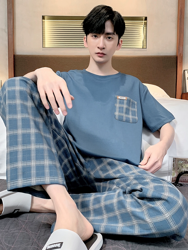 Antarctic men’s pure cotton short -sleeved long pants summer pajamas