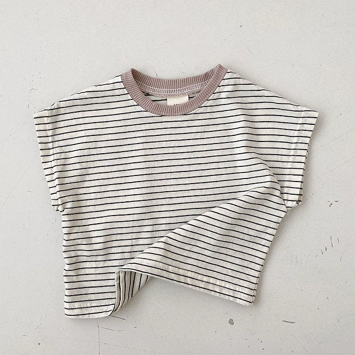 Baby clothes Korean version of summer dress men and women, short -sleeved T -shirts, stripes, thin children’s half -sleeved bottoming shirt