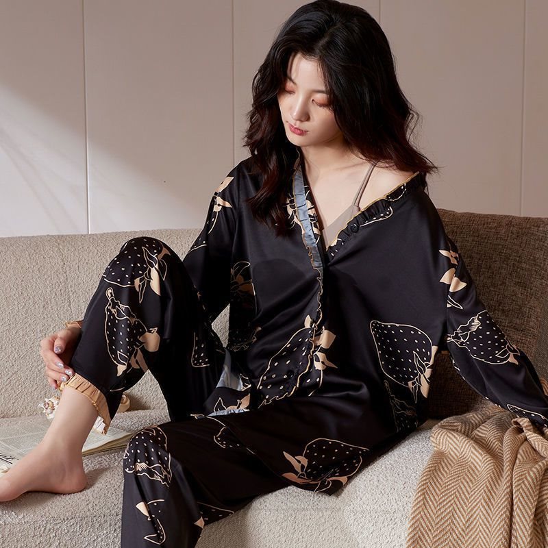 [Brand Discount] Time-limited Buying-Daren recommend Pajamas Women’s Spring and Autumn Ice Silk Long Sleeve 2023 New