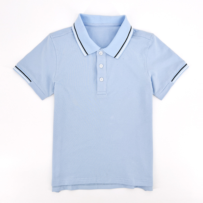 Children’s Polo Shirt Cotton Short-sleeved White light blue School Uniform for Primary and Secondary School Students suit Boys and Girls Lapel T-shirt