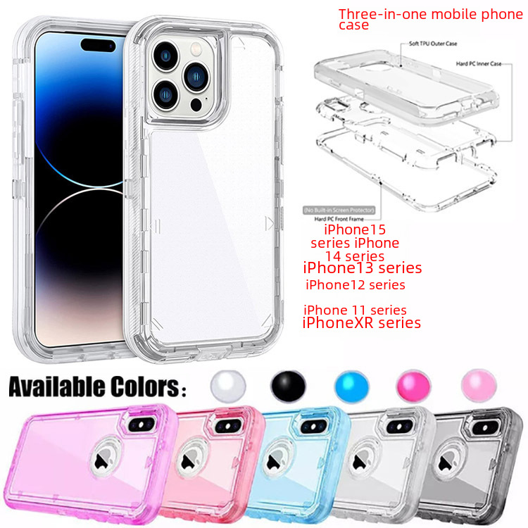 For iPhone 14 13 12 11 15 Pro Max transparent three-in-one anti-drop 15Plus