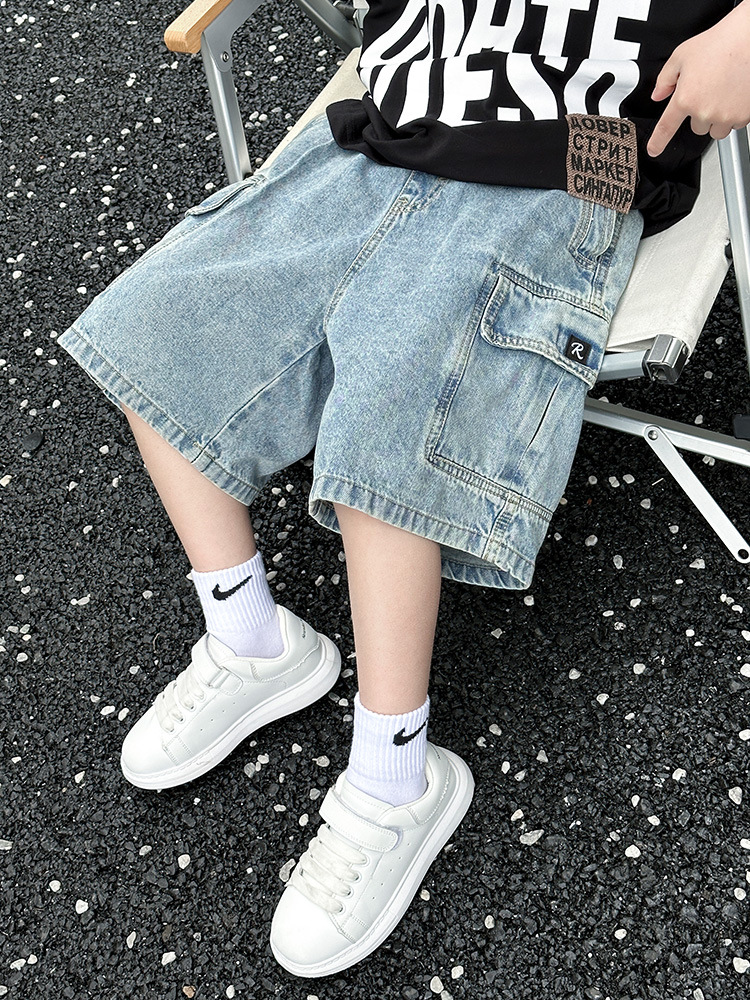 Summer Zhongda Boys Workwear Denim Shorts New Children’s Wear Children’s Boys Light Color Mid-length Pants Relaxed-fit All-match